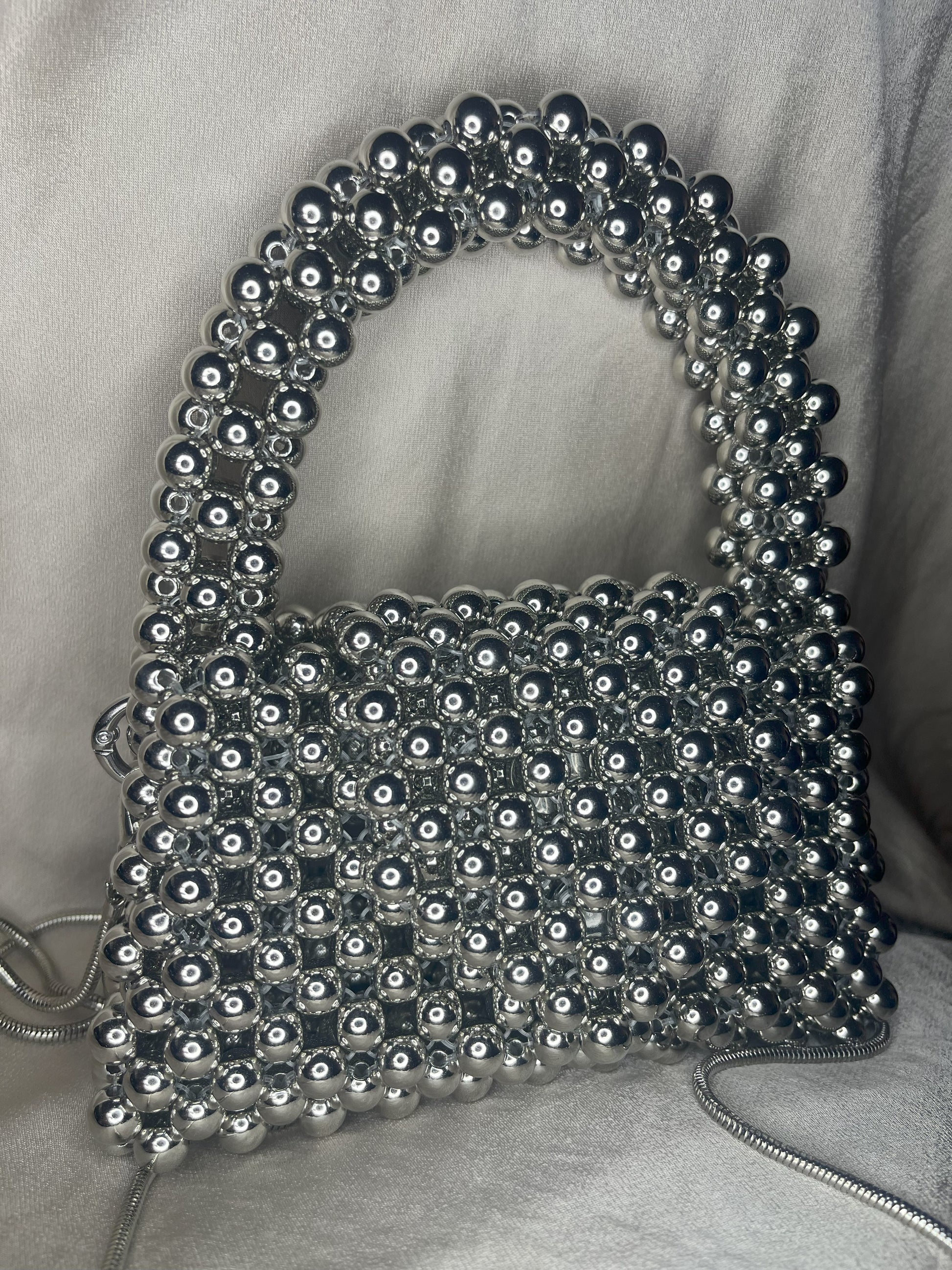 MODEL №19 silver round 8 mm beads bag